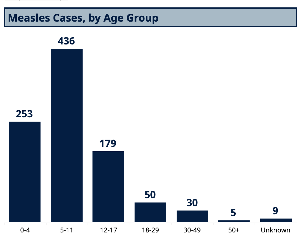 The great majority of measles cases are in school age children in the South Carolina outbreak. That’s in contrast to the typical outbreak, where more infants and toddlers are usually affected.
